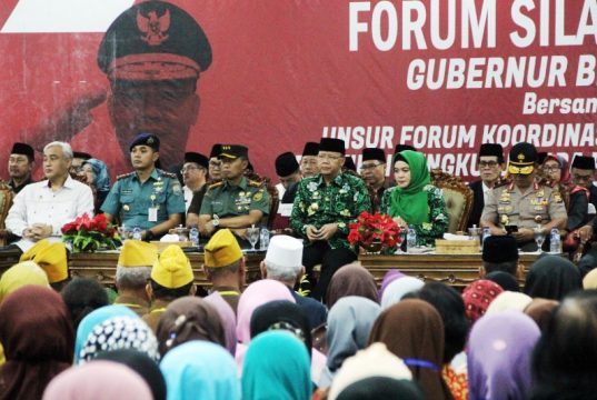 di Bengkulu,” “Inikan forum silaturahmi dari seluruh elemen, tentu saya katakan menjadi kesempatan bagi kita untuk bersilaturahmi, kita bersyukur para orang tua kita tetap sehat, di usia tua mereka sehingga tetap bisa menjadi sumber nasehat untuk kita dalammenjalankan pembangunan di Bengkulu,” jelas Gubernur Bengkulu Rohidin Mersyah didampingi Istri Derta Wahyulin Rohidin.