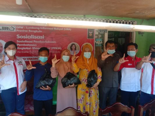 Bertempat di rumah Bupati LIRA Kabupaten Lebong acara ini Dihadiri Pengurus DPW Lumbung Informasi Rakyat (LIRA) Provinsi Bengkulu, Tenaga Kesehatan dari Puskesmas pelabuhan talang leak Kab. Lebong serta Perwakilan dari Polda Bengkulu. Mengusung tema ‘Sosialisasi Pemberlakuan Pembatasan Kegiatan Masyarakat (PPKM)’ kegiatan ini juga diisi dengan kegiatan Bakti Sosial (baksos) dengan membagikan sembako dan masker.